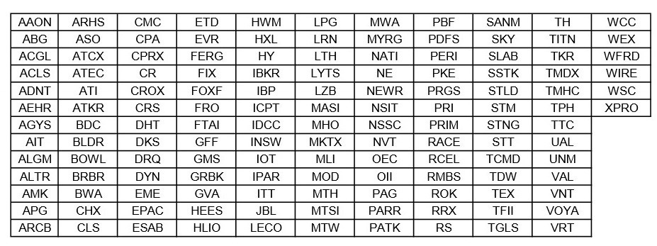 XLI (Industrials): Building materials, business support services, heavy construction, commercial vehicles, industrial suppliers, industrial machinery